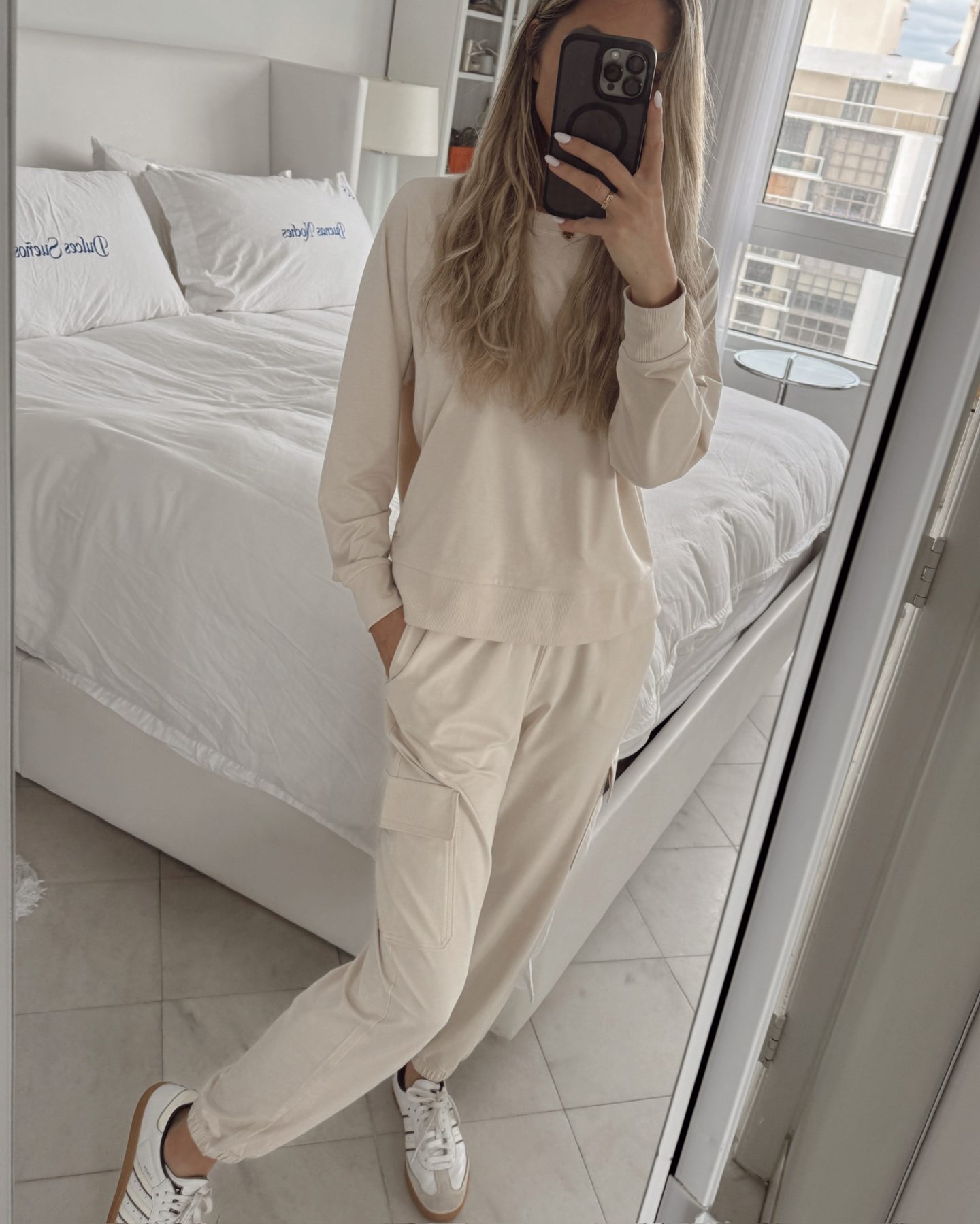 This pullover is the softest top and is perfect to wear to workouts and transition into a daily staple. I love wearing this in the fall whether I’m lounging or on the go. I’m wearing a size small.