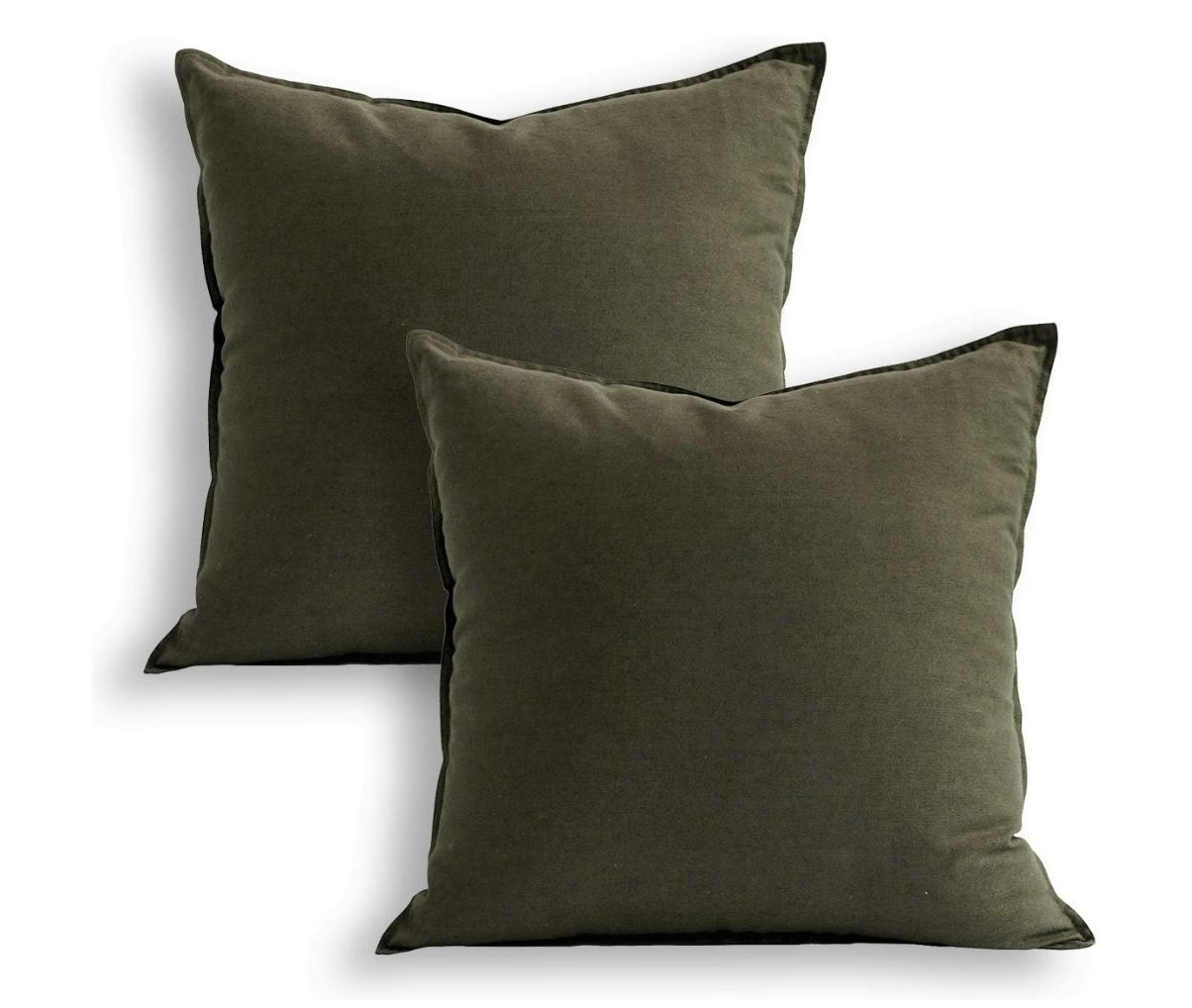 - Another color that will be majorly in this season is olive green, like the hue on these pillow cases. These are such a steal — you get two covers for under $16.