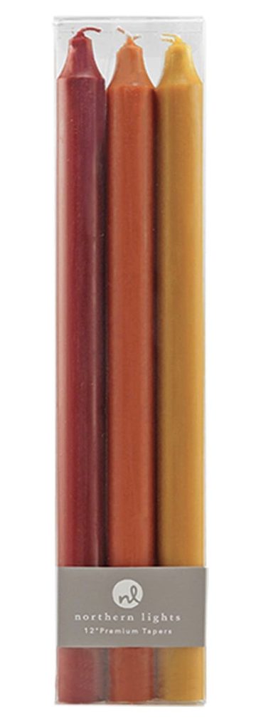 - Add some color to your dining room table with these autumn inspired taper candles.