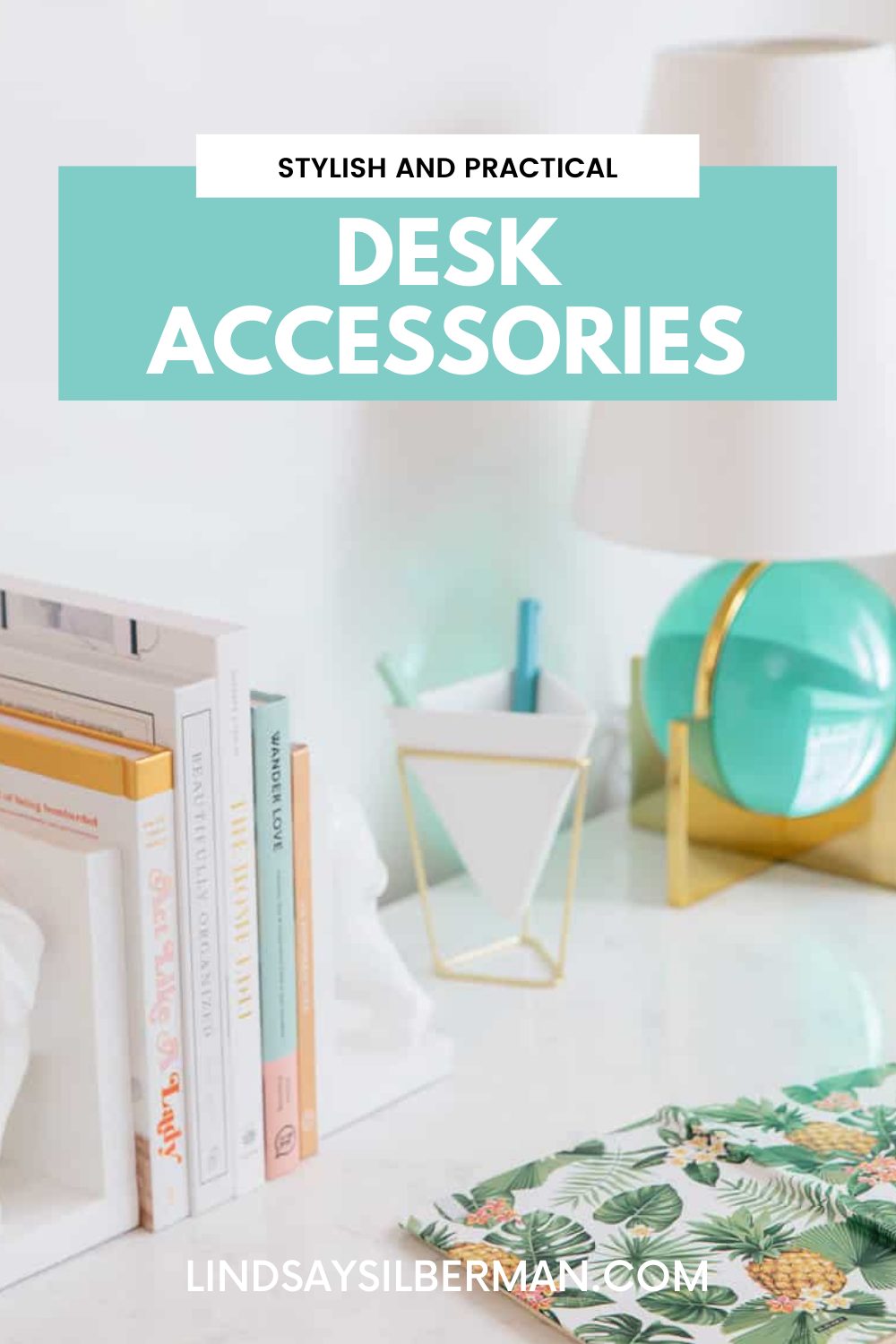 A chic desk lamp is a no-brainer, but be sure to choose one that doesn’t take up too much space. I personally can’t stand a cluttered desktop and a bulky lamp is the last thing you want to give up precious real estate for.