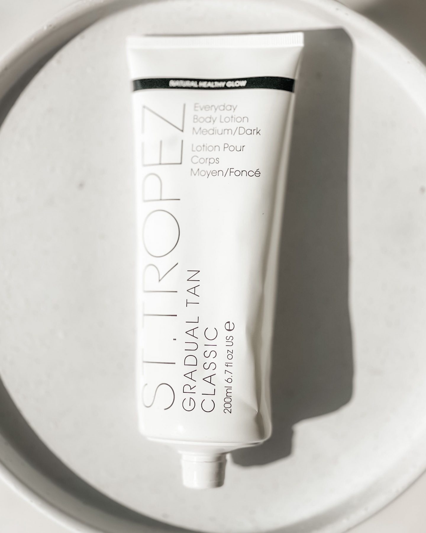 I’m often asked what self-tanner I use and if you’re a beginner, I always recommend St. Tropez Gradual Tan Classic Lotion or the Tan-Luxe Gradual Illuminating Tanning Lotion. It’s the absolute best self-tanner for beginners. If you know how to apply body moisturizer and you know how to wash your hands, you’ll do just fine with it—no need to be intimidated.