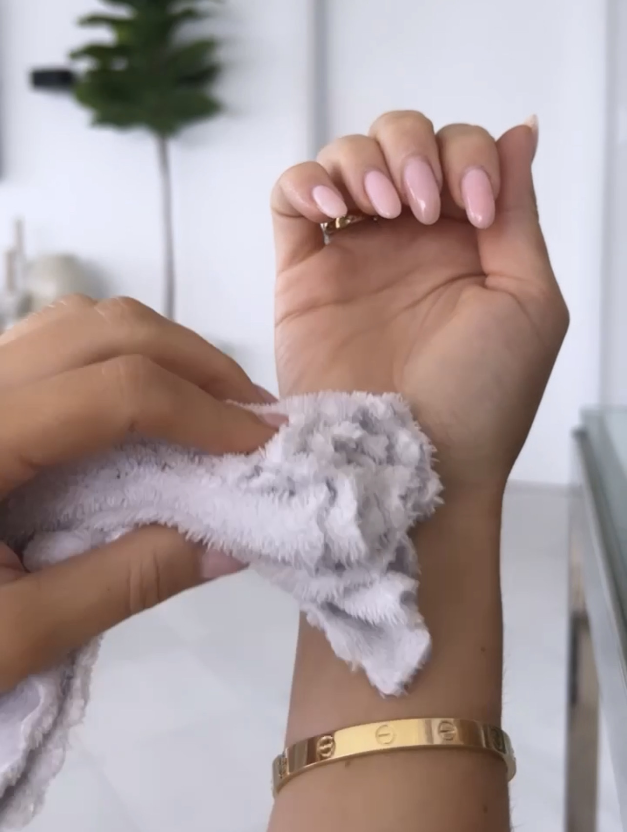 When it comes to applying self-tanner to your hands and wrists, things can get a bit tricky. If I’m using the Gradual Tan Classic Lotion, I’ll put a drop on the back of my hands and rub them together. If I’m using the Whipped Creme Mousse, I’ll use whatever leftover product there is on my tanning mitt (after I’ve done my whole body) and buff it onto the tops of my hands.