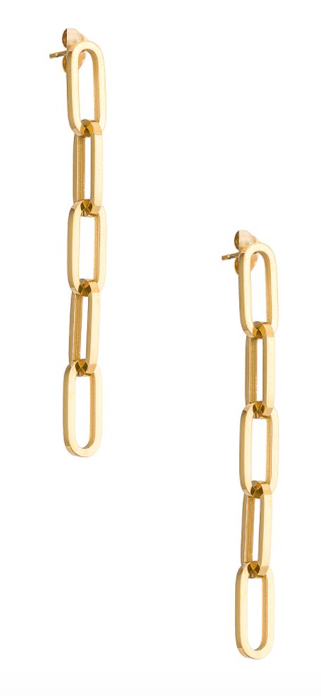 Chain link jewelry has become very trendy. These gold dangly earrings are super cute and go with nearly everything. Style them with a pair of denim shorts (these are my favorite), a cropped t-shirt, and a pair of classic white sneakers.