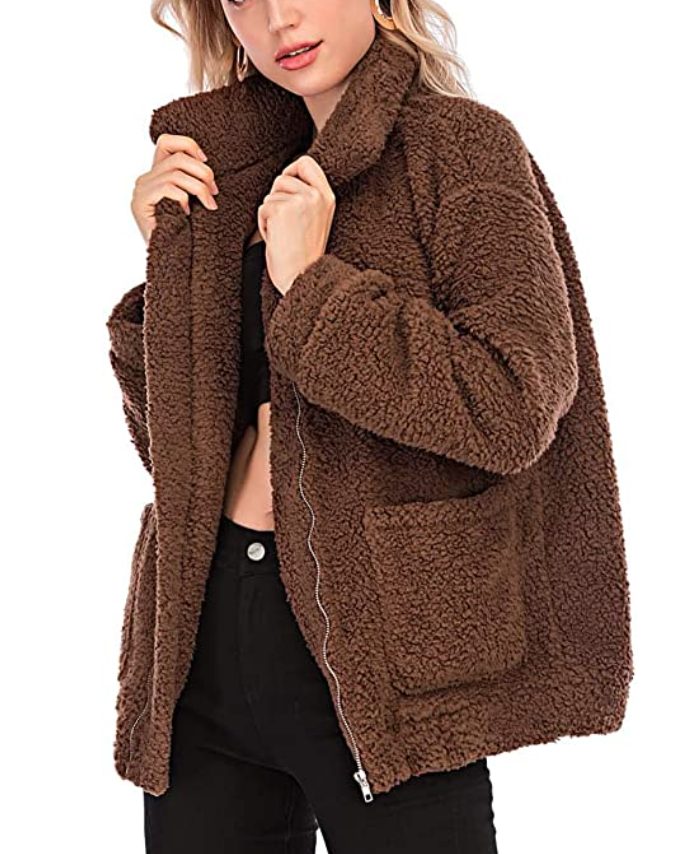 - Another Amazon find! It’s that classic shearling coat everyone seems to have—but cheaper.