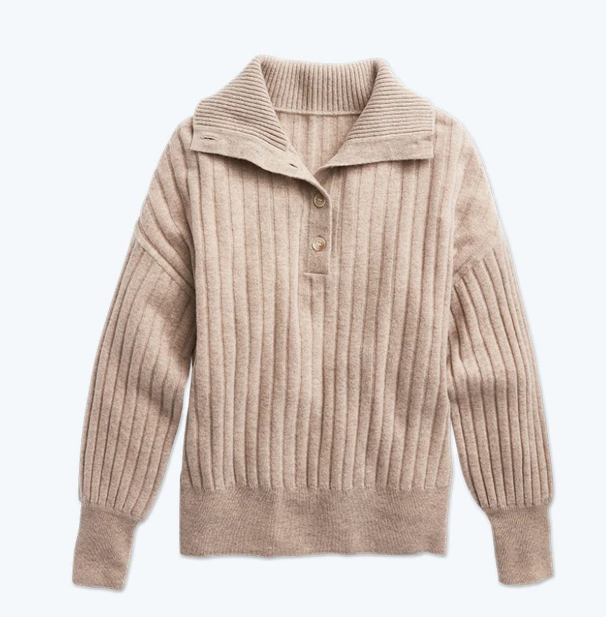 - I love that this ribbed sweater can go with pretty much anything. I’d pair it with dark jeans, black boots, and a cropped leather jacket.