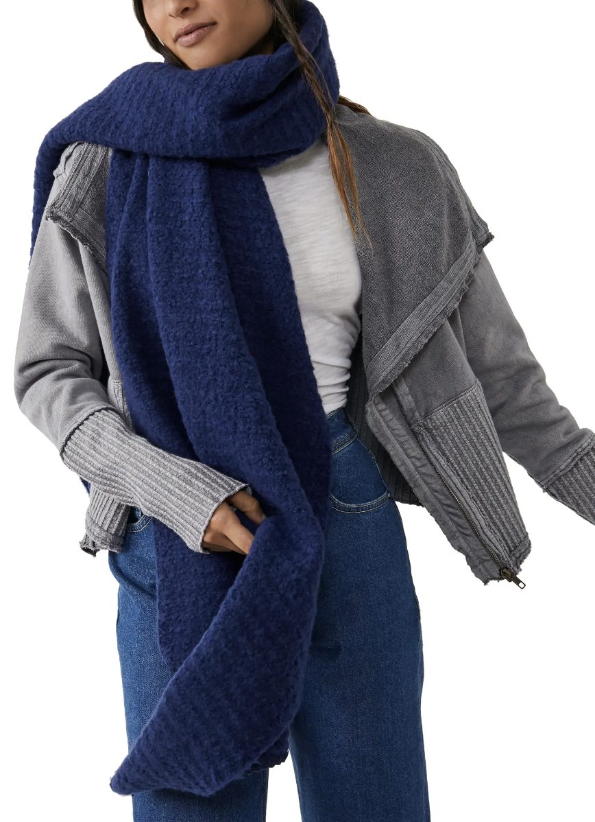 - Giant scarves are fun, because they’re kind of just blankets you can wear in public. I love the deep, dark blue shade on this one—it’s such a fun color to wear throughout winter.