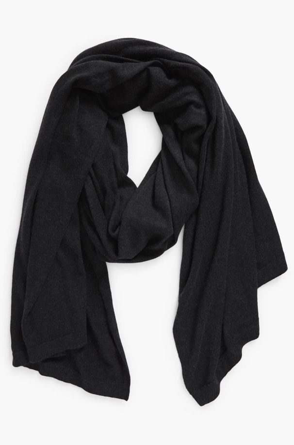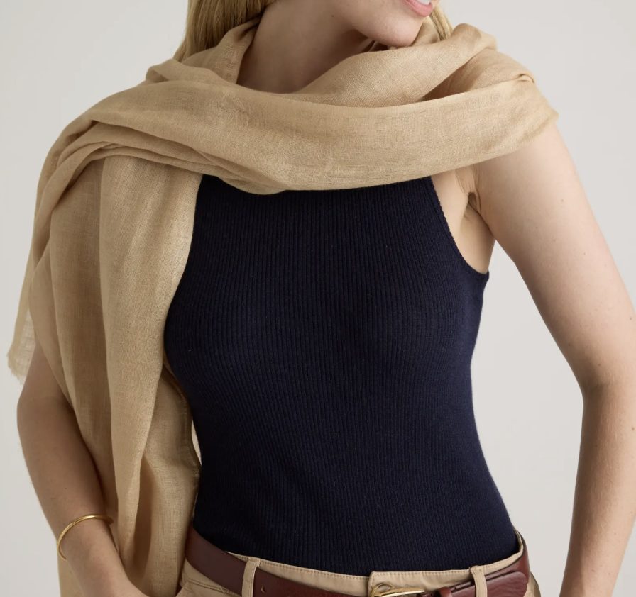 I wore a heavier blanket scarf (similar to the below) over my shoulders in the mornings and late at night, and a lighter silk scarf by Cuyana wrapped around my neck during the day.