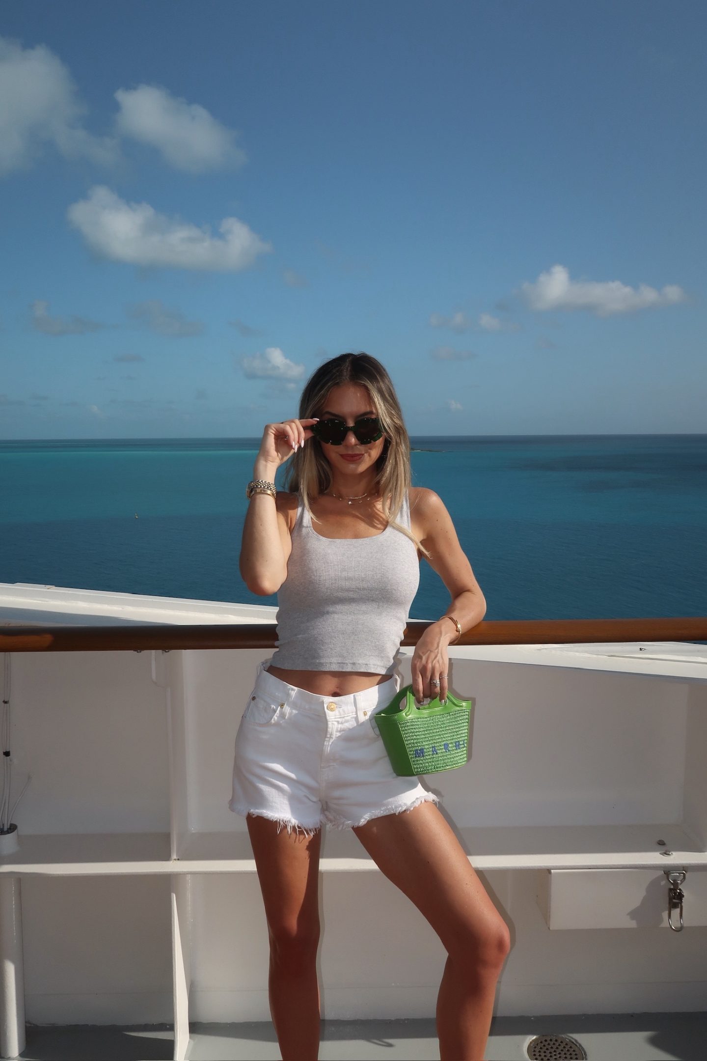 I’m admittedly not the biggest fan of denim shorts, but the one time I do wear them on repeat is when I’m on a beach vacation. They’re practical, easy to slip into, and they go with pretty much everything. I also like that they can be worn as a cover up/to the beach but also work for going out afterwards.