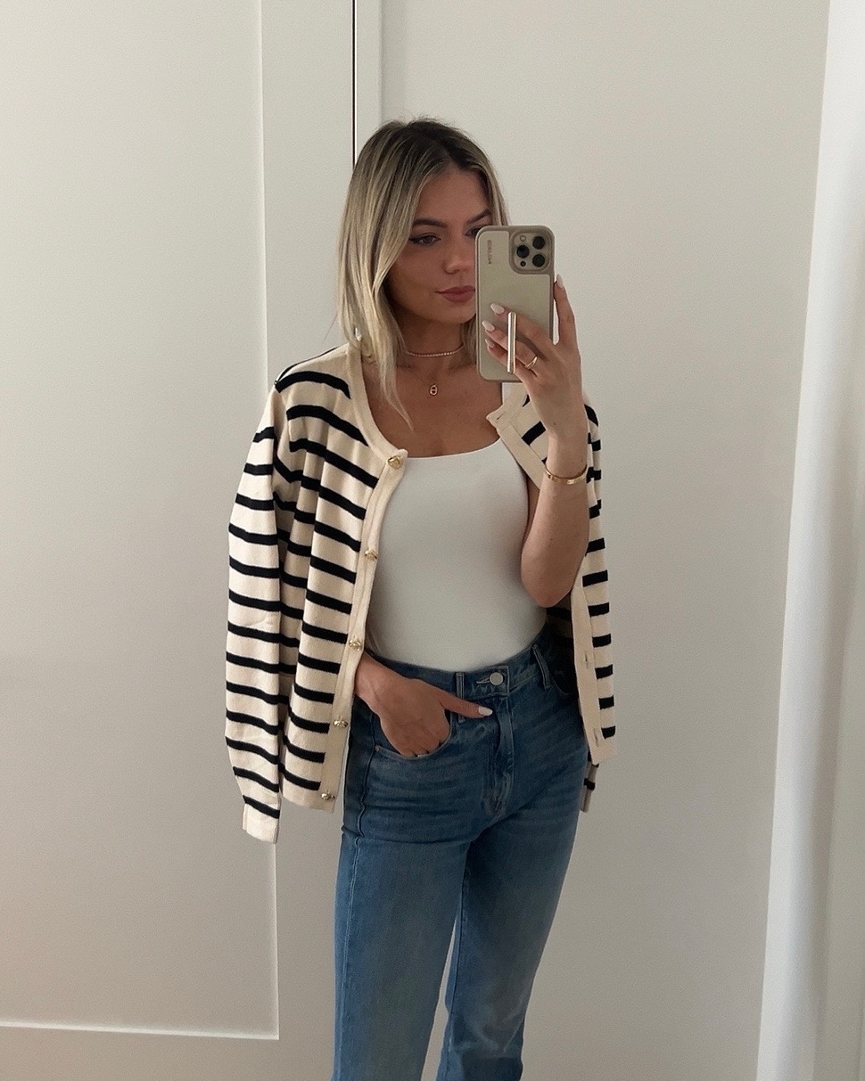 This sweater was a huge hit this year, and it looks far more expensive than it actually is. The gold buttons and striped design add such a chic touch.