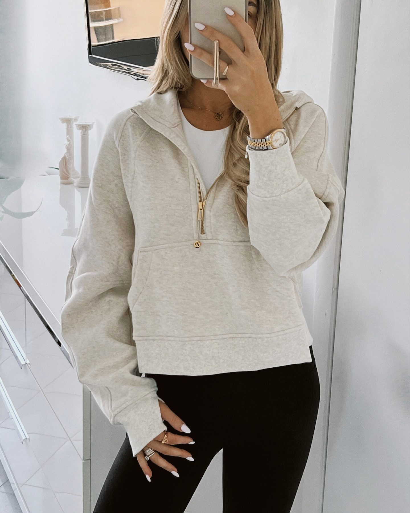 I’ve also been loving my Lululemon oversized scuba half-zip for post-workout lounging. It’s a simple staple piece that I honestly didn’t realize I would get as much use out of as I have been. The fit is perfect. Great to throw over a pair of leggings to run errands, walk the dog, or take a workout class.