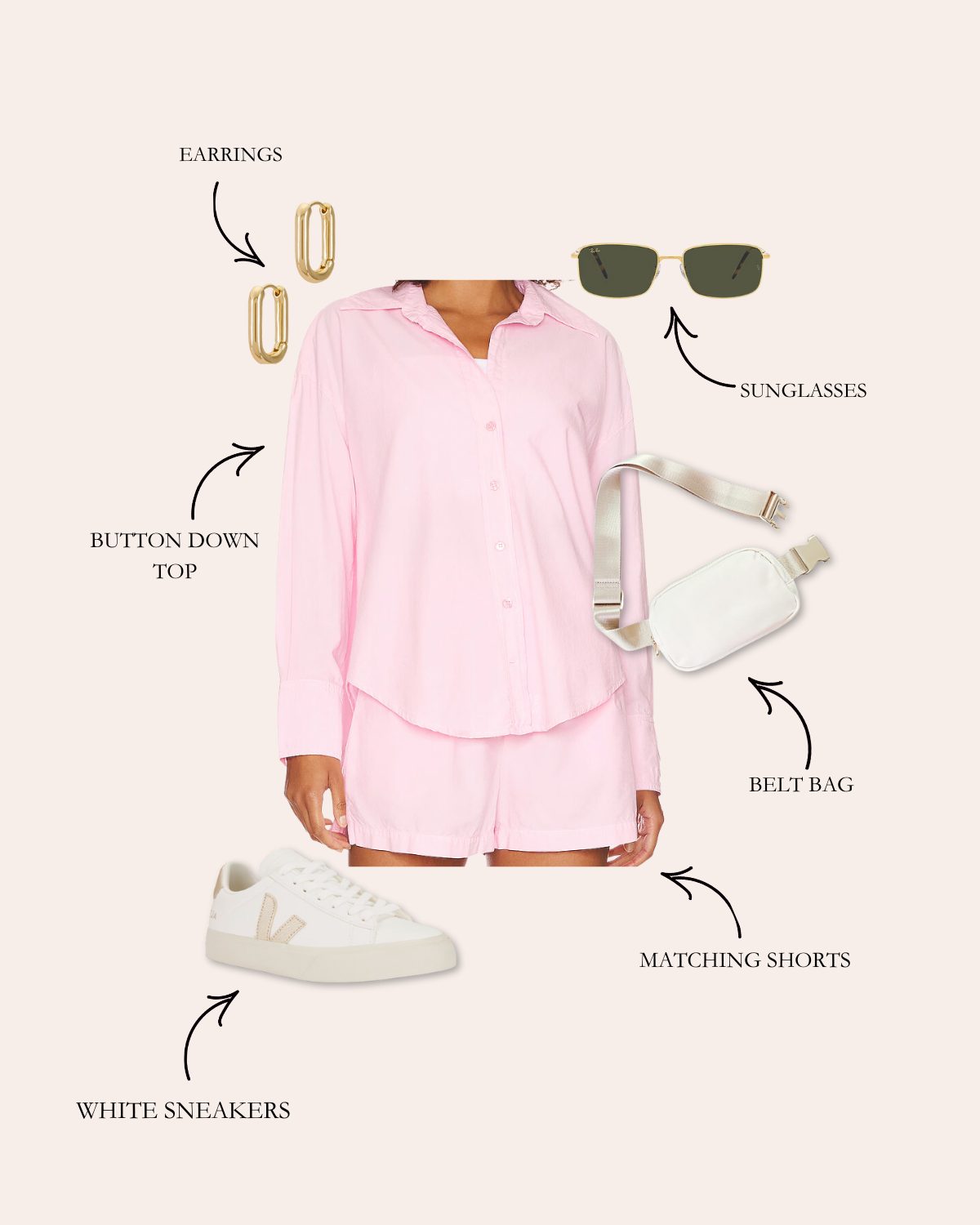 I don’t think there’s a better day to day outfit than an oversized button down and denim shorts. It’s a tried-and-true combo that looks elevated while offering comfort. You could really pair any shoes with this look, but slip-on loafers will leave you with a feminine and chic end result.