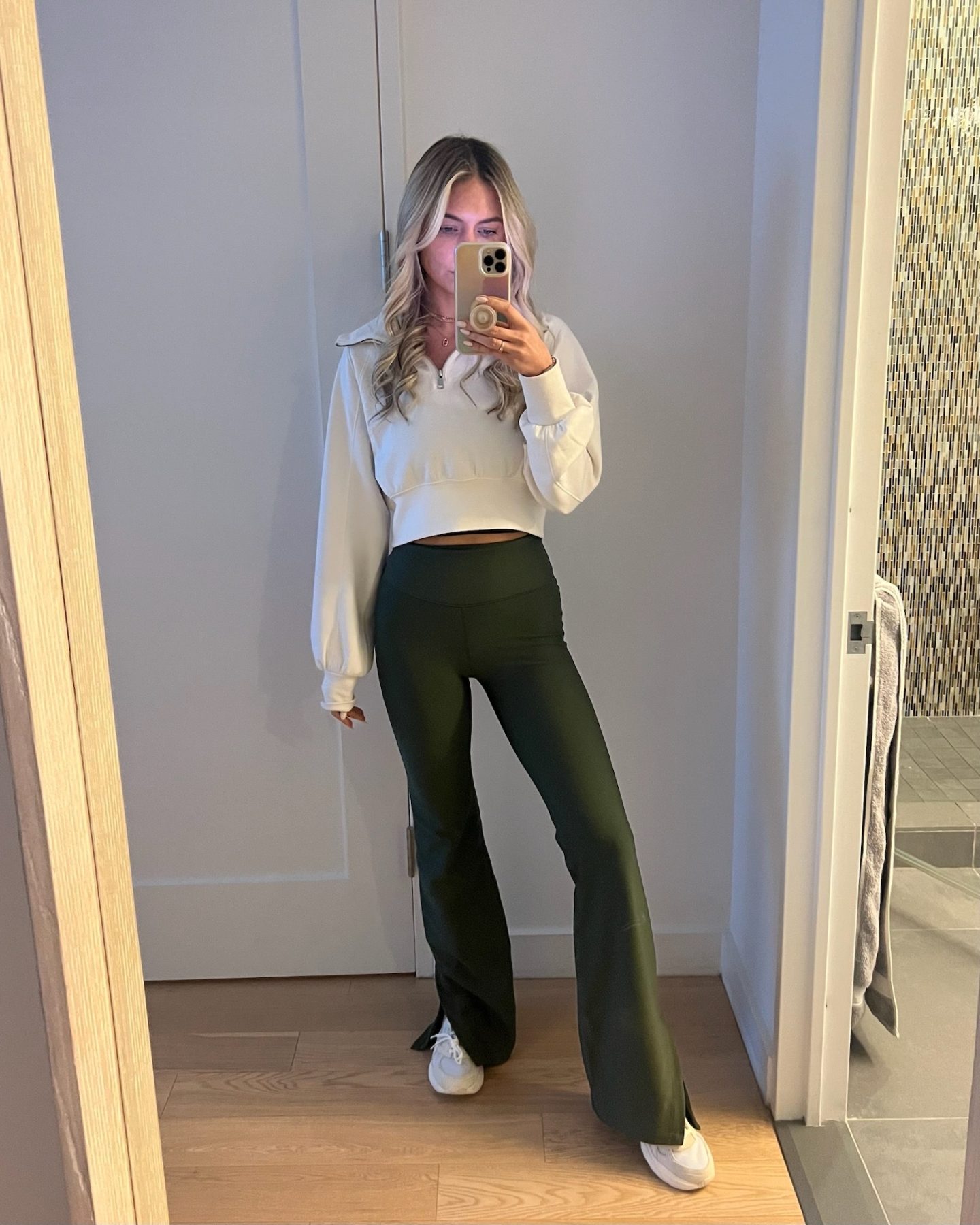 Flared Leggings | Half-Zip Jacket | White Sneakers